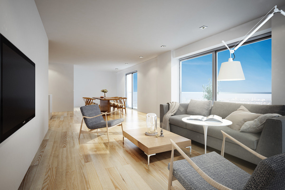 Amenities: Modern lobby, open and landscaped atriums, private terraces, swimming pool, spa and parking.