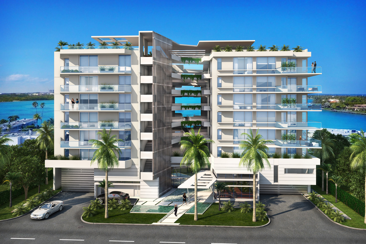 Description: High-end condo building with cutting edge finishes and amenities. Features an eloquent architecture, connecting breezeways and unique tropical landscape.